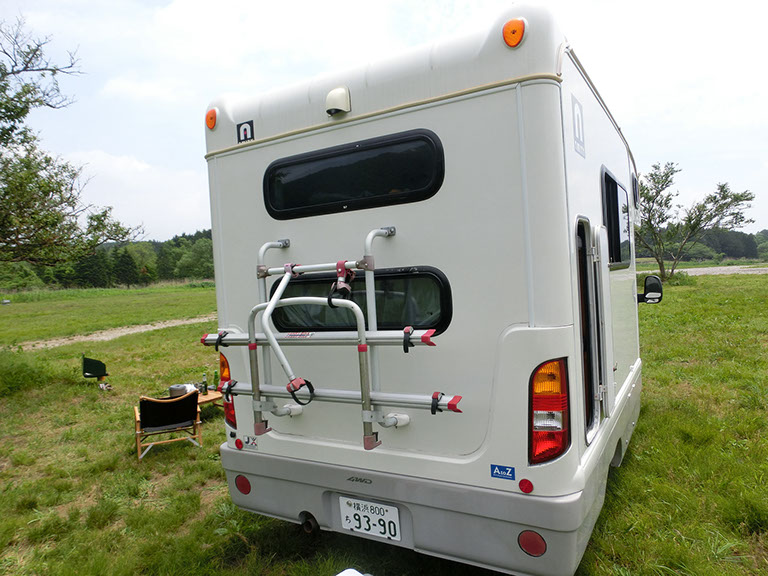 ベッド展開なしでとても楽です。大人二人が寝られます。近年のキャンピングカーの主流です。マスト装備 !!!!